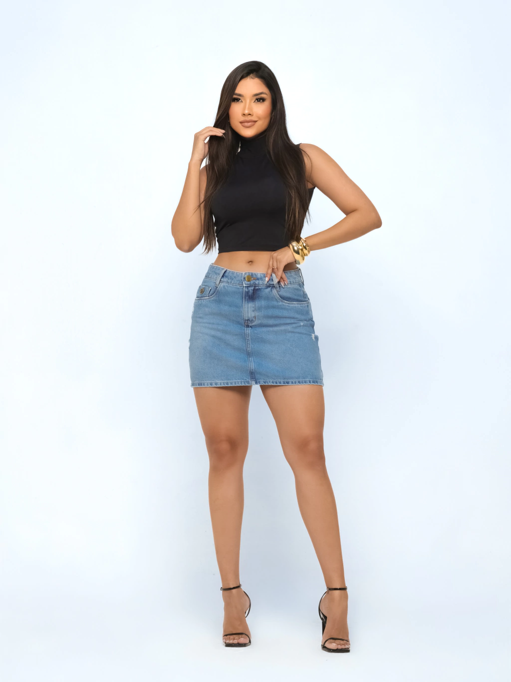 Esse modelo de Saia é um arraso! O cumprimento é mais curtinho, uma peça em alta tendência. Aposte que é sucesso, modelagem perfeita, possui pala traseira redonda no bumbum, deixando as curvas ainda mais definidas e sensuais.
